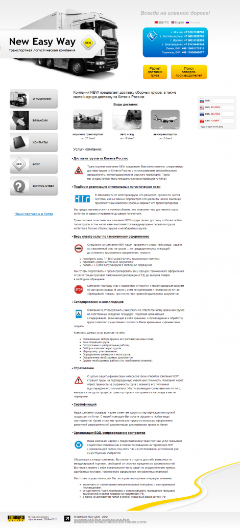 «New Easy Way» — это группа компаний, специализирующихся на транспортной логистике.