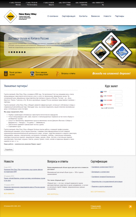 Группа компаний «New Easy Way» основана в 2006 году. На протяжении 8 лет компания оказывает весь спектр международных транспортно-логистических услуг и услуг по таможенному оформлению грузов. На сегодняшний день официальные представительства компании открыты в Москве, Ростове-на-Дону, Иркутске, Пекине, Гуанчжоу и Иу. Во всех крупнейших городах России компанию представляют компании-партнеры.